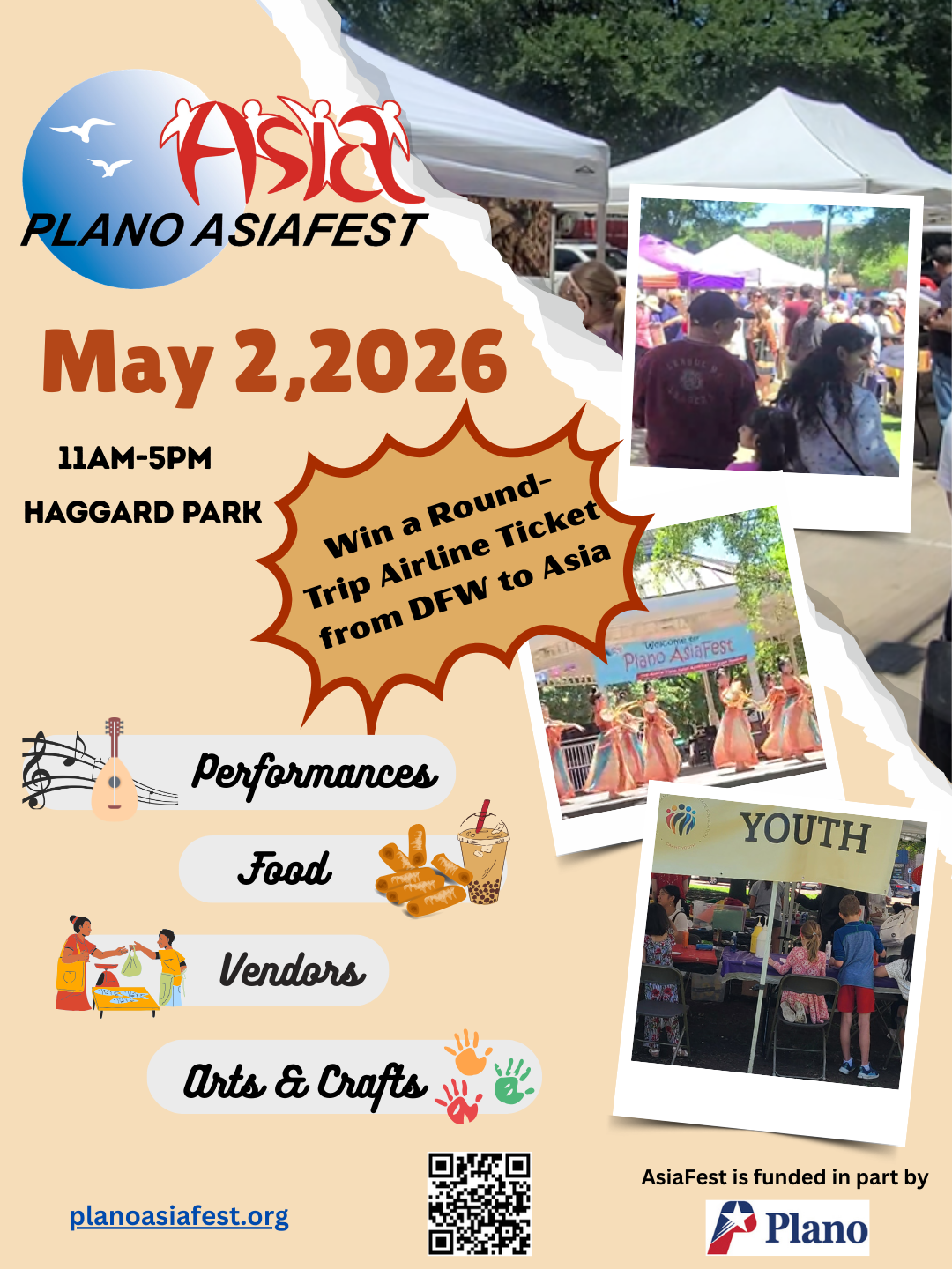 Join us for the twenty-second year of Plano AsiaFest. AsiaFest '26 will showcase the rich cultures of Asia. The numerous cultural demonstrations, performances, and vendors will provide a fun and engaging time for your entire family.